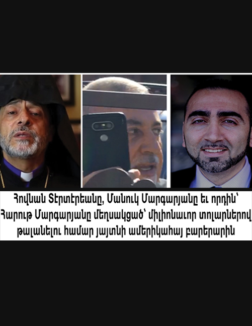 Ըստ հաւաստի աղբիւրներու, մեծապէս կոռումպացուած Հովնան Տէրտէրեան եւ իր կատարածոներ Մանուկ Մարգարյանը եւ որդին` Հարութ Մարգարյանը, երկար ամիսներ մեղսակցած են միլիոնաւոր տոլարներով թալանելու համար յայտնի ամերիկահայ բարերարին, որը հանդի-սանում է համայնքի նւիրեալ անդամ եւ Արեւմտեան Թեմի Առաջնորդարանի երկարամեայ ջատագով։