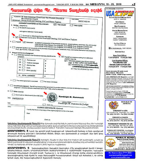 ՃՇՄԱՐՏՈՒԹԻՒՆ 5. Ինչպէ՞ս կրնայ Հոլիվուդի Ս. Հովհաննու Կարապետ եկեղեցիի Անդամական Ժողովը «լիակատար աջակցու-թիւն ցուցաբերել» այդ սուտերուն: Չէ՞ն գիտեր, թէ ինչ է տեղի կþունե-նայ, եւ թէ՝ շահերու հակասութիւն կամ բախու՞մ կայ եւ «նեպոտի՞զմ» («ԽԾԲ-ութիւ՞ն») գոյութիւն ունի, ինչպէս հաւանաբար նկատեց դատաւորը: