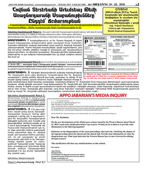 ՃՇՄԱՐՏՈՒԹԻՒՆ 8. Նշում. Այս գրողին կողմէ հասցէագրուած էլեկտրոնային նամակը որ նաեւ գրանցուած փոստային ճամբով ղրկուած է Արեւմտեան Թեմին, մինչեւ օրս պատասխան չէ ստացած: (Այս էջին վրայ տեղադրուած են պատճենները)