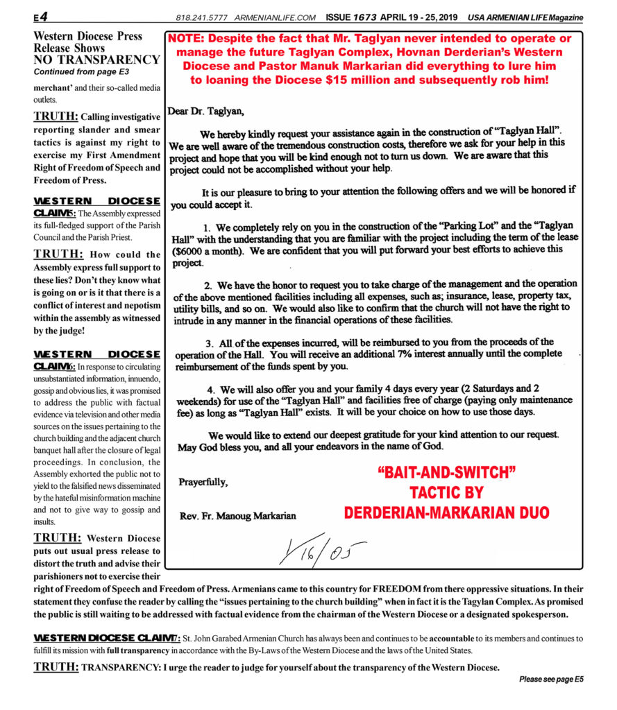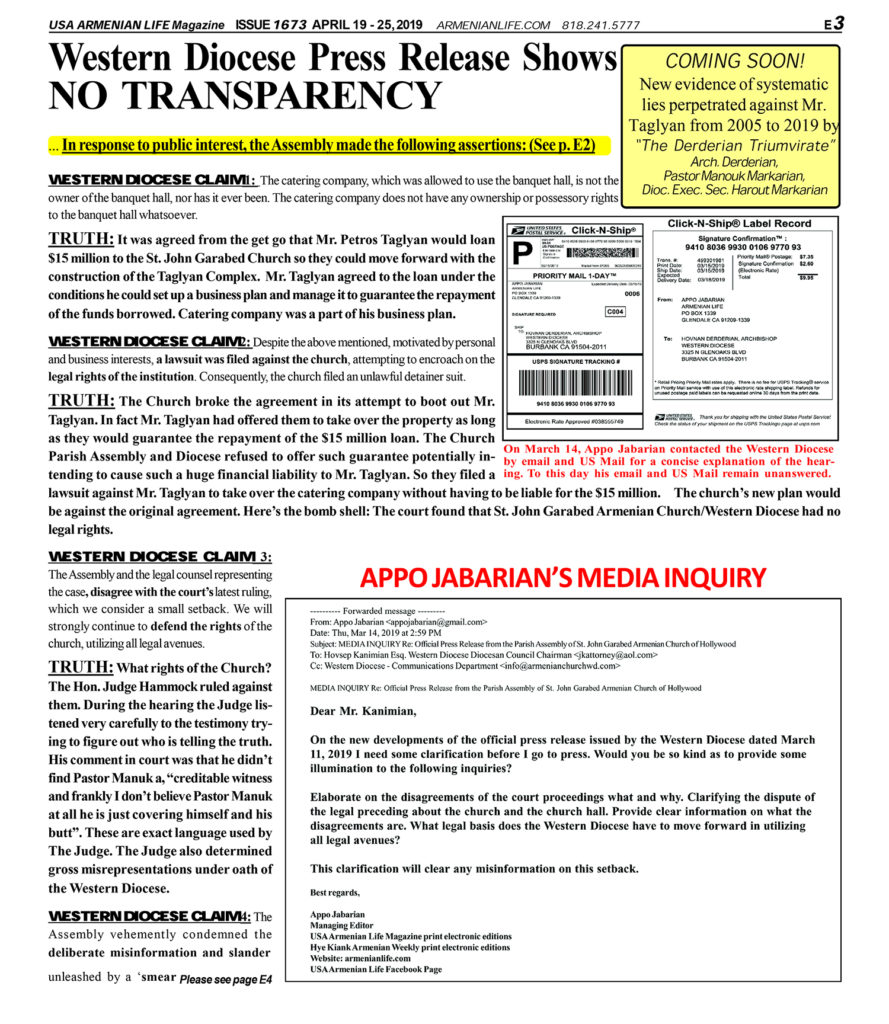 TRUTH: What mission of serving our faithful! IT’S A MISLEADING STATEMENT OF MISSION! PARISH ASSEMBLY of ST. JOHN GARABED ARMENIAN CHURCH should get their facts straight and start spreading fact and not packs of lies. It is only then that they can start serving our faithful!